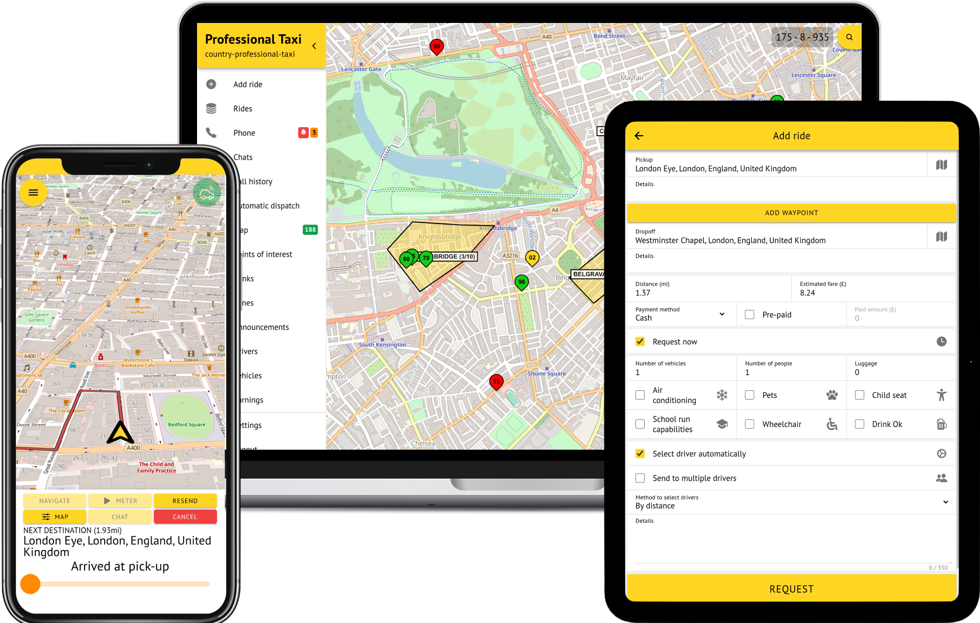 Featuring a powerful dashboard app, a versatile driver app, and a user-friendly client app. With our apps, you'll be able to manage your taxi business more efficiently than ever before!