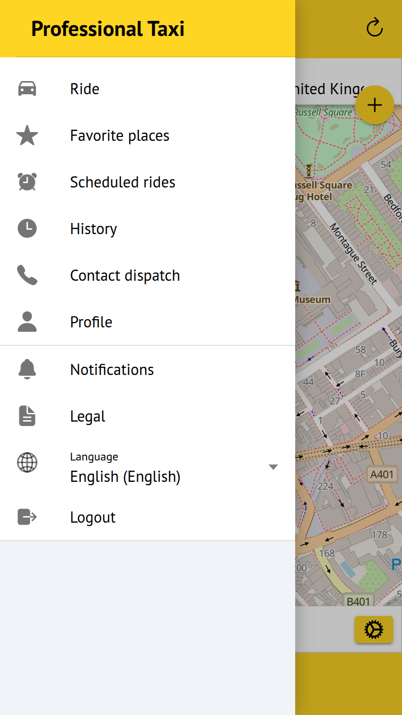 This app will also be available from the browser of any device with an internet connection at the url: https://(your-company-name).client.taxi/