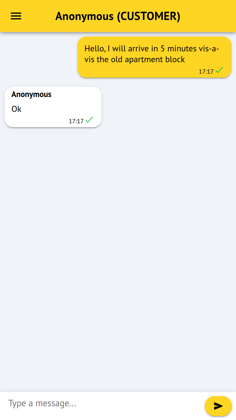 Upon receiving the ride you have the option of instant messaging through the app or, if configured, the ability to directly call the customer either through the dispatcher's PBX or phone number.