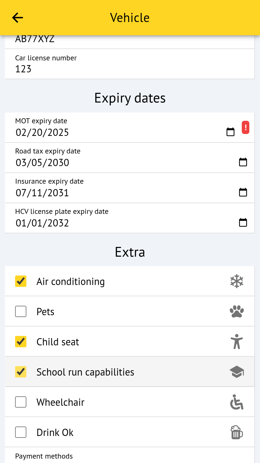 Ability to add all your vehicles in the system and select exactly the one you're using at the time