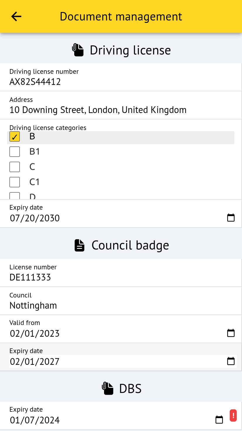 Simple and straightforward process for uploading and managing official documents for both you and your vehicles